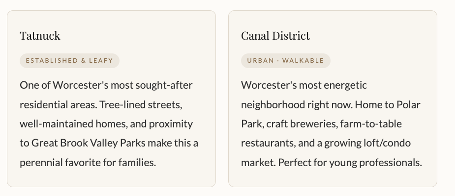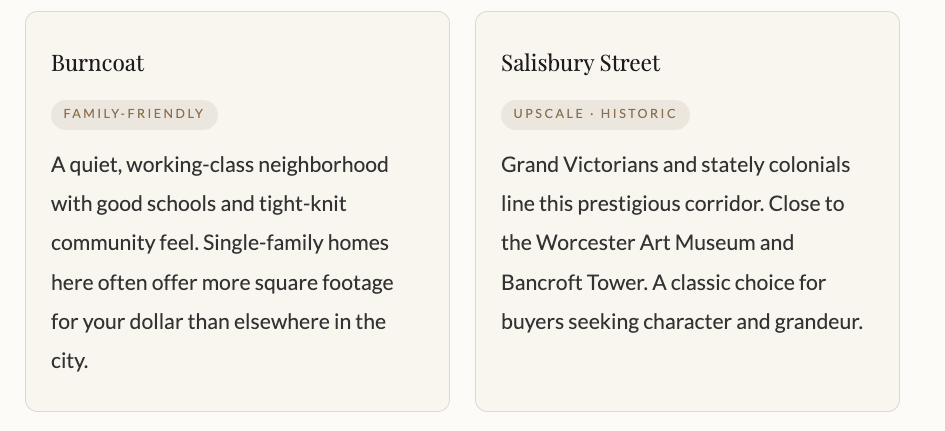 Worcester is a city of distinct neighborhoods, each with its own personality. Finding the right fit matters enormously, and a local agent can make all the difference in steering you toward the pocket of the city that suits your lifestyle.